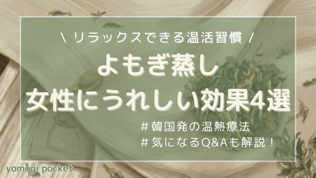 最近、身体が冷えやすくなった 肌の調子がなかなか整わない 仕事や家事でストレスが溜まっている… 体調や肌トラブル・日常で抱えるストレスに悩む女性は、意外と多いはず。 実はそんな悩みを持つ女性に今人気なのが「よもぎ蒸し」です。 よもぎ蒸しは、韓...