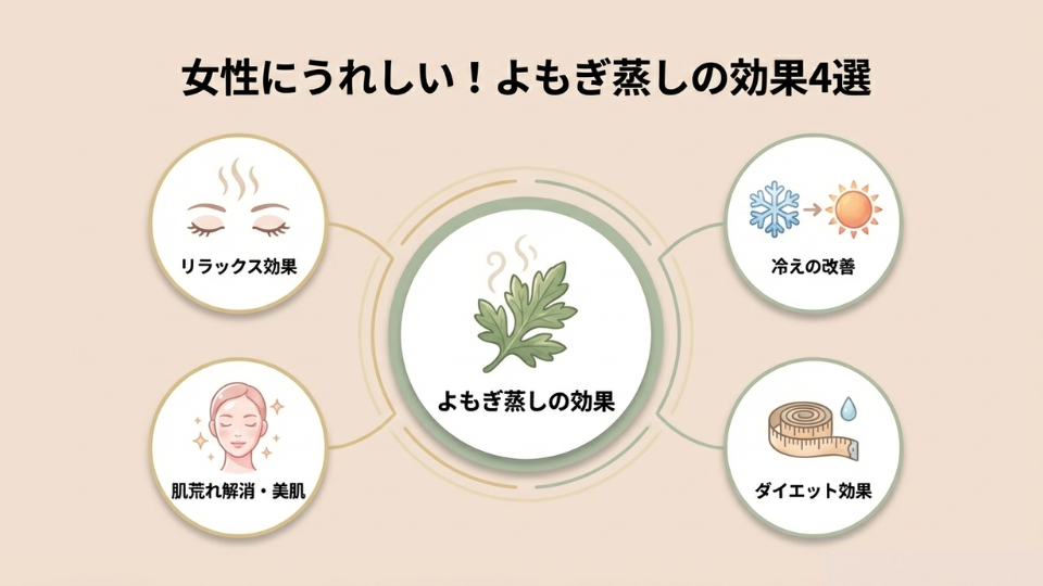 よもぎ蒸しが女性に支持される理由は、その多彩な効果にあります。ここでは特に女性にうれしい4つの効果を詳しくご紹介します。