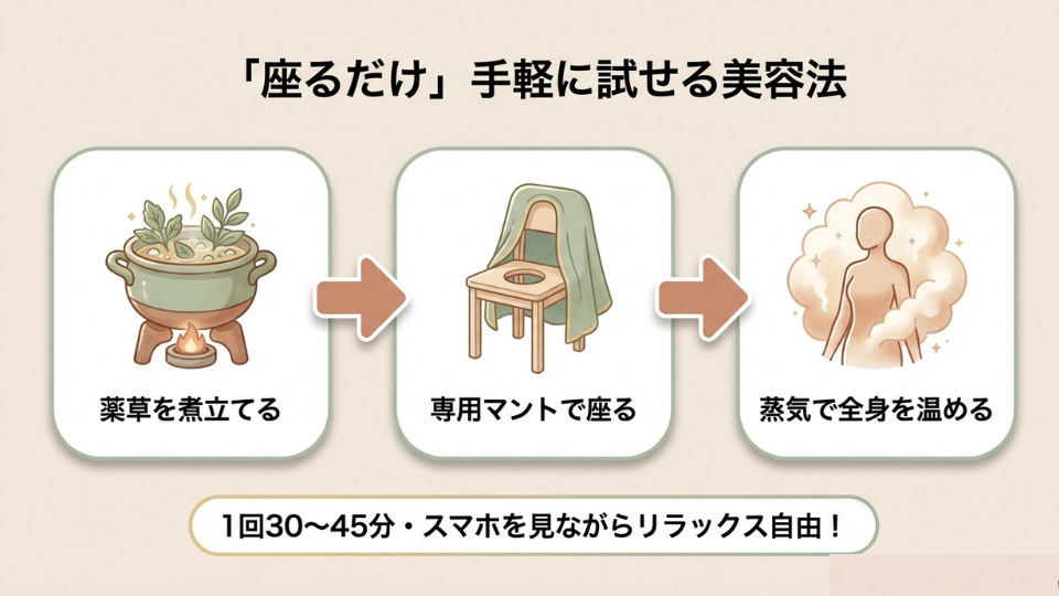 2026年現在では冷え対策のみならず、ダイエットや美容、自分へのご褒美時間として、よもぎ蒸しを楽しむ女性が増えてきました。